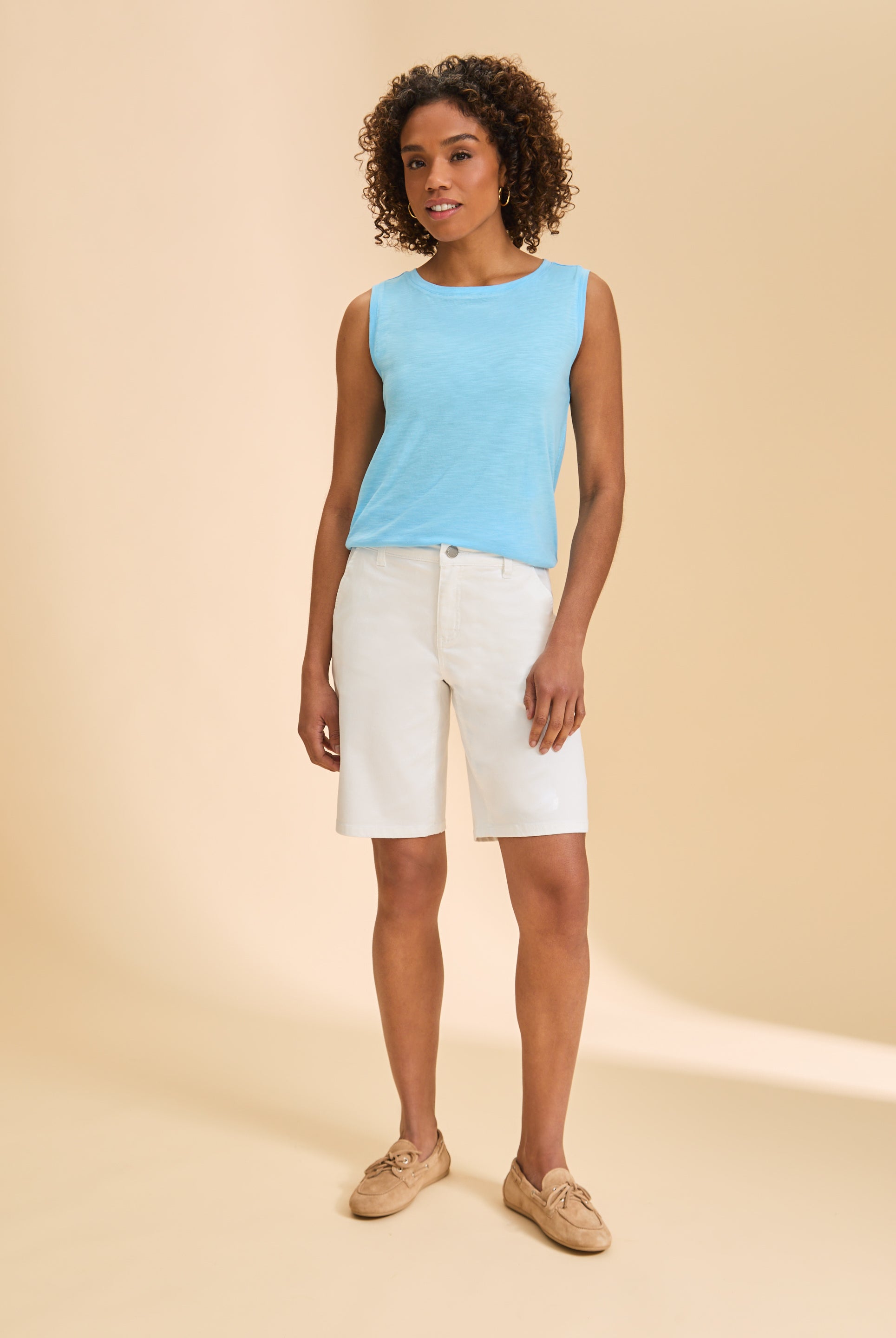 - Pair a simple tee with fitted shorts and espadrilles for a stylish weekend brunch outfit. Ideal for breezy strolls or casual hangouts with friends.