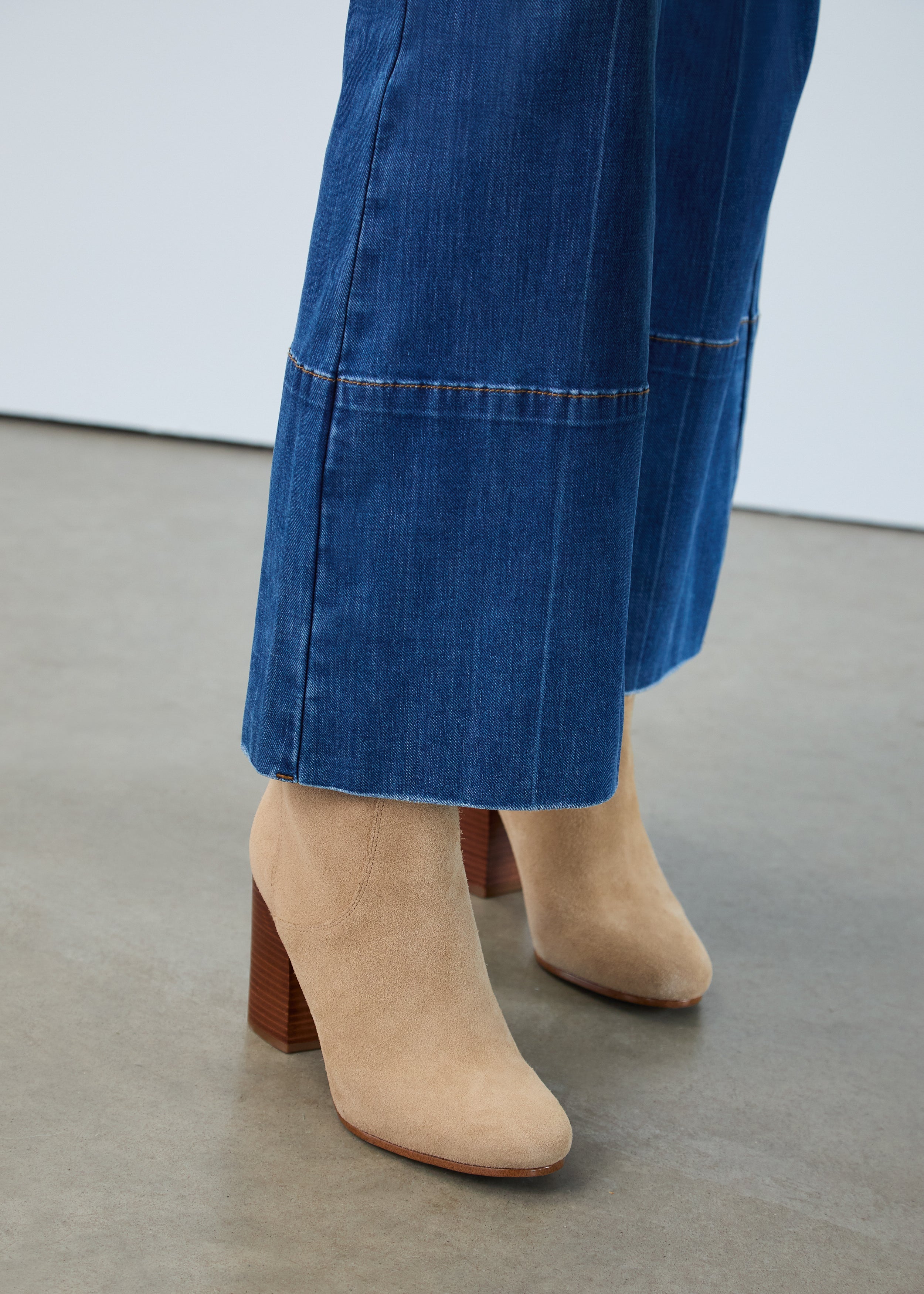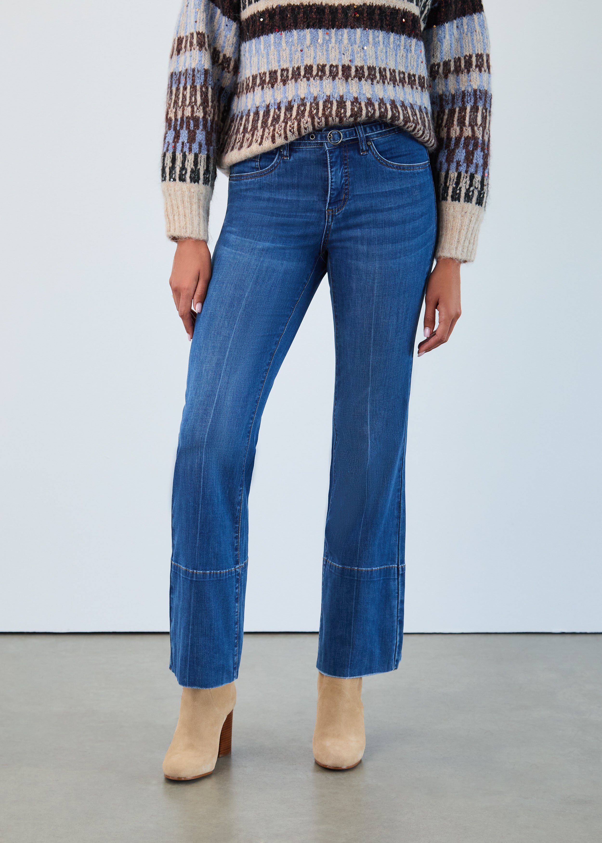 Tailored ease with a twist. Crafted in lived-in medium blue, this Olivia bootcut jean is defined by its sleek lines, fluid leg, and removable belt—an accessory and a statement all in one. Real pockets ground the look in everyday utility.