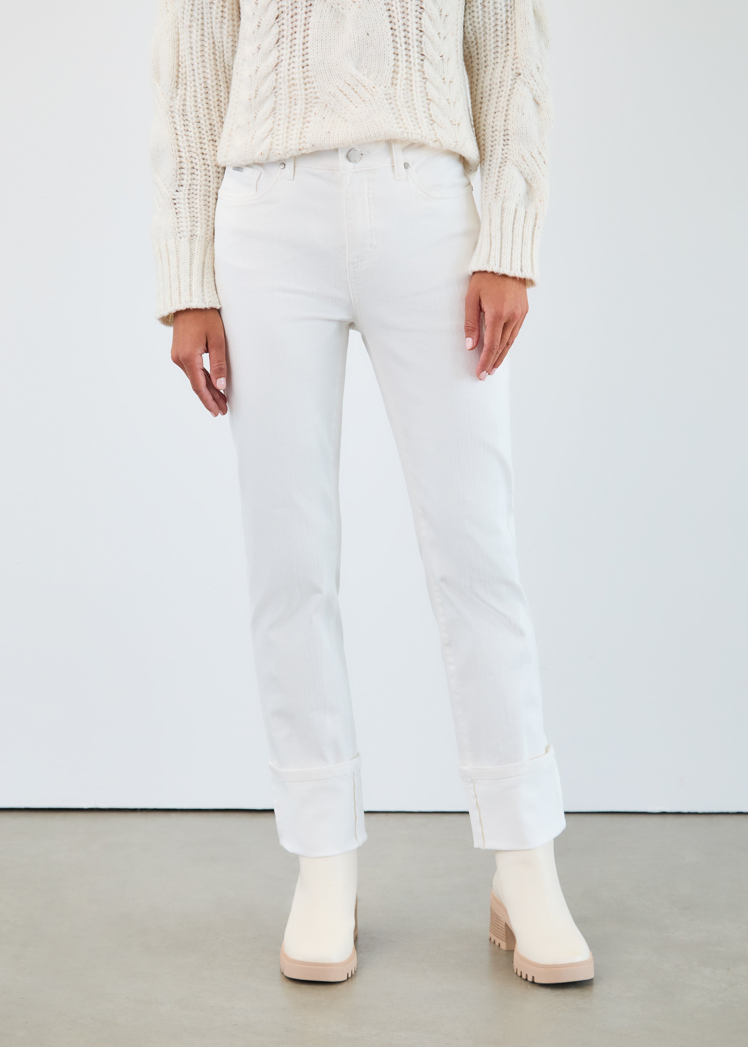 Olivia Cuffed Straight Ankle Denim, Winter White
