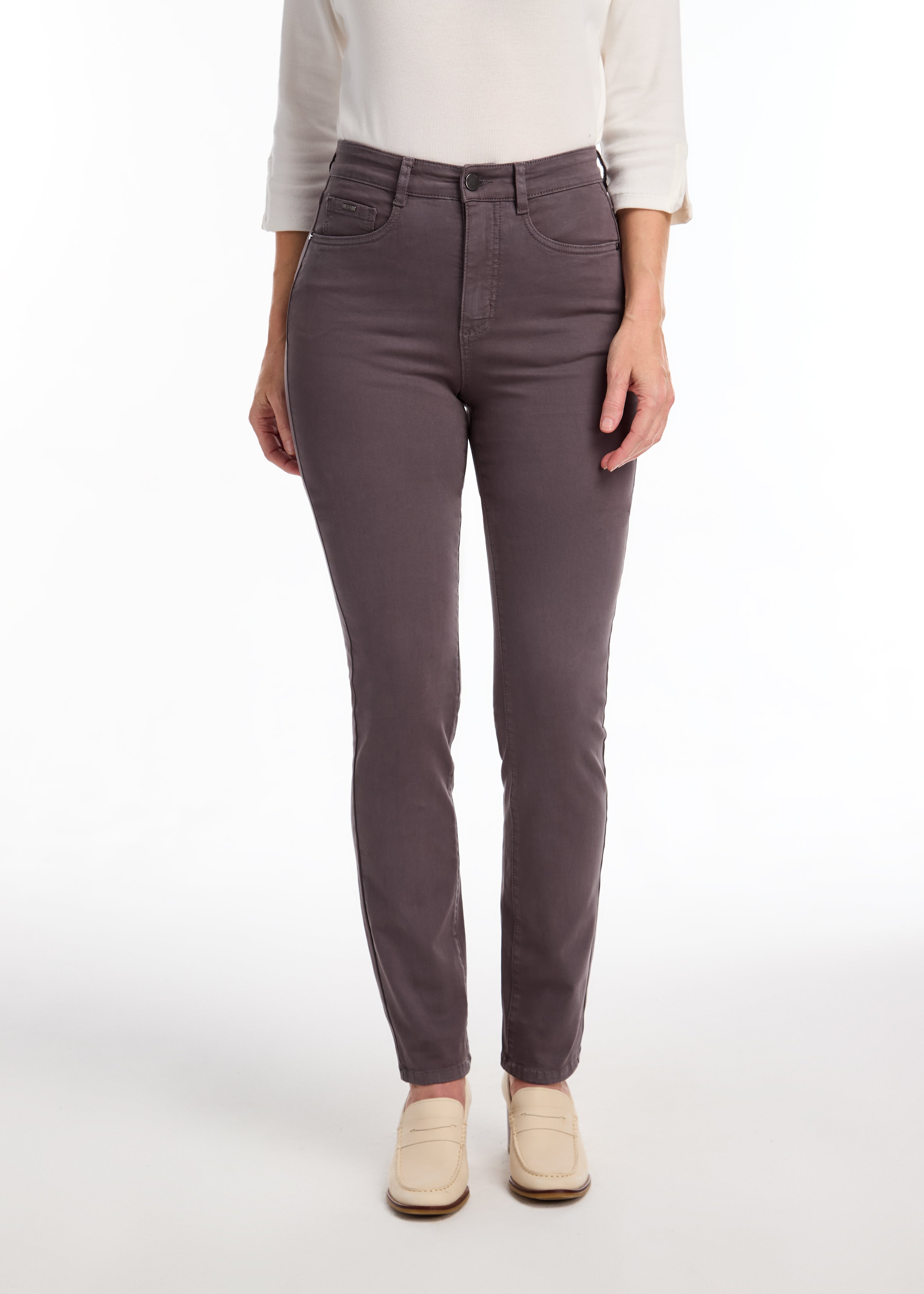 Petite Suzanne Straight Leg Denim, Stone Gray