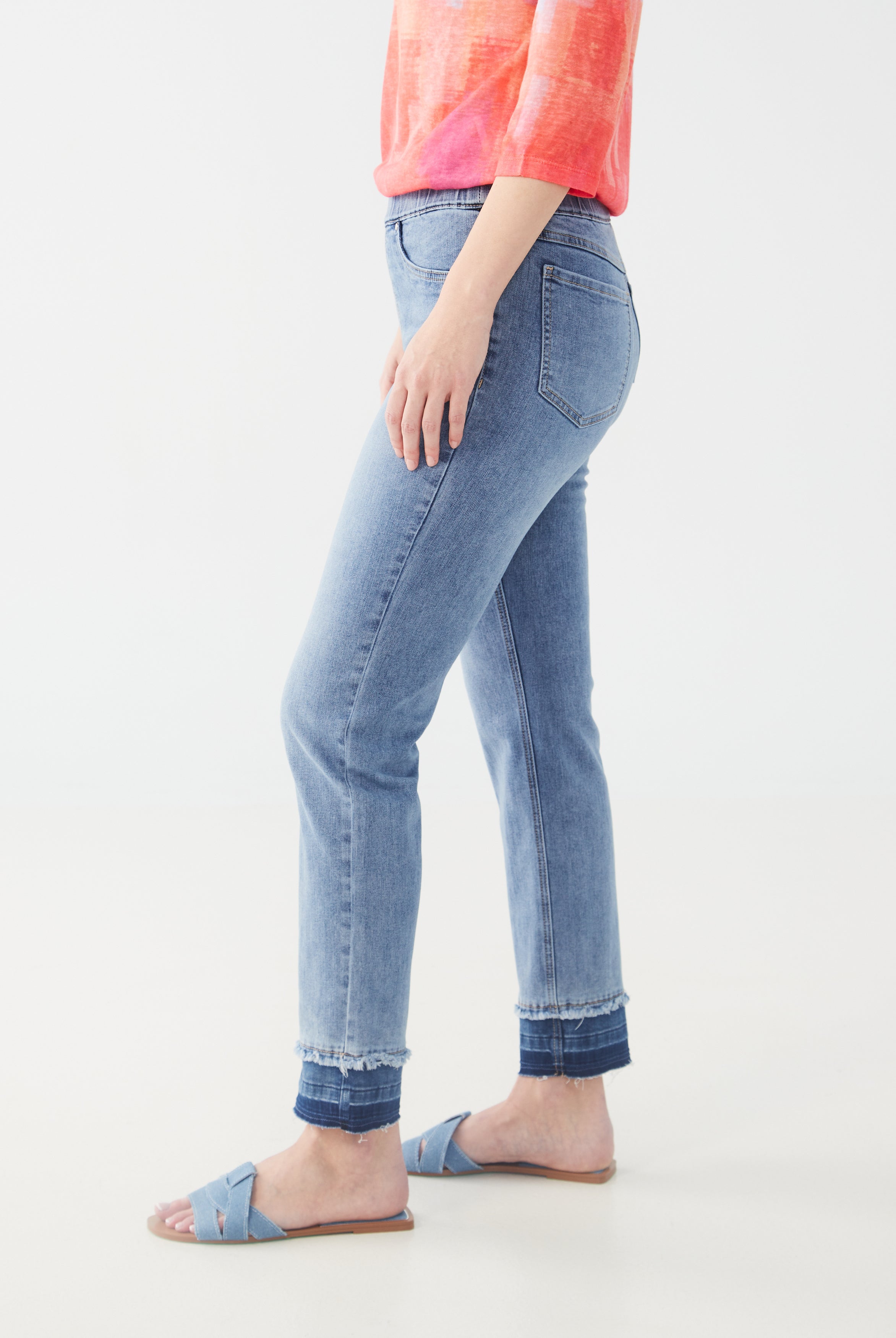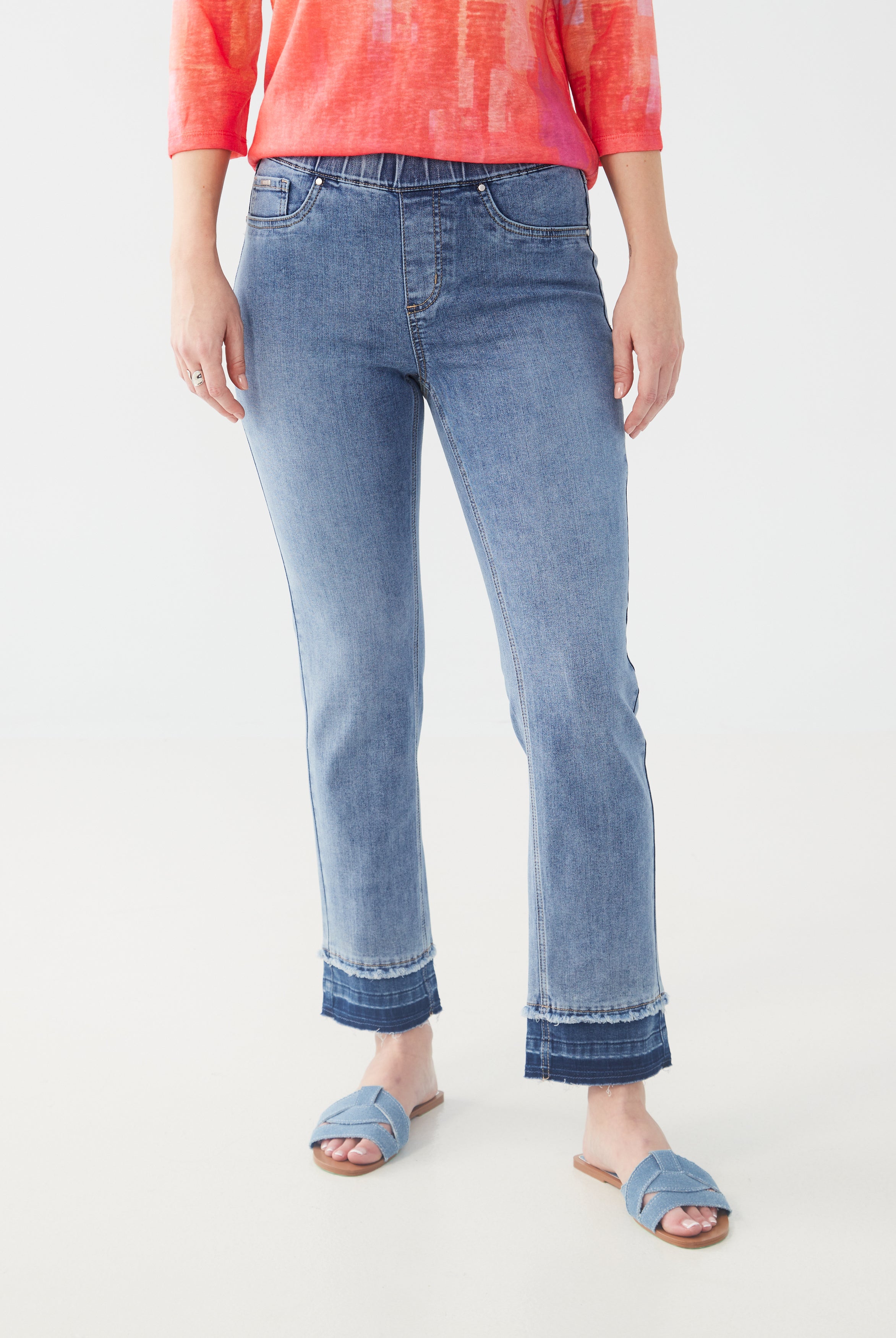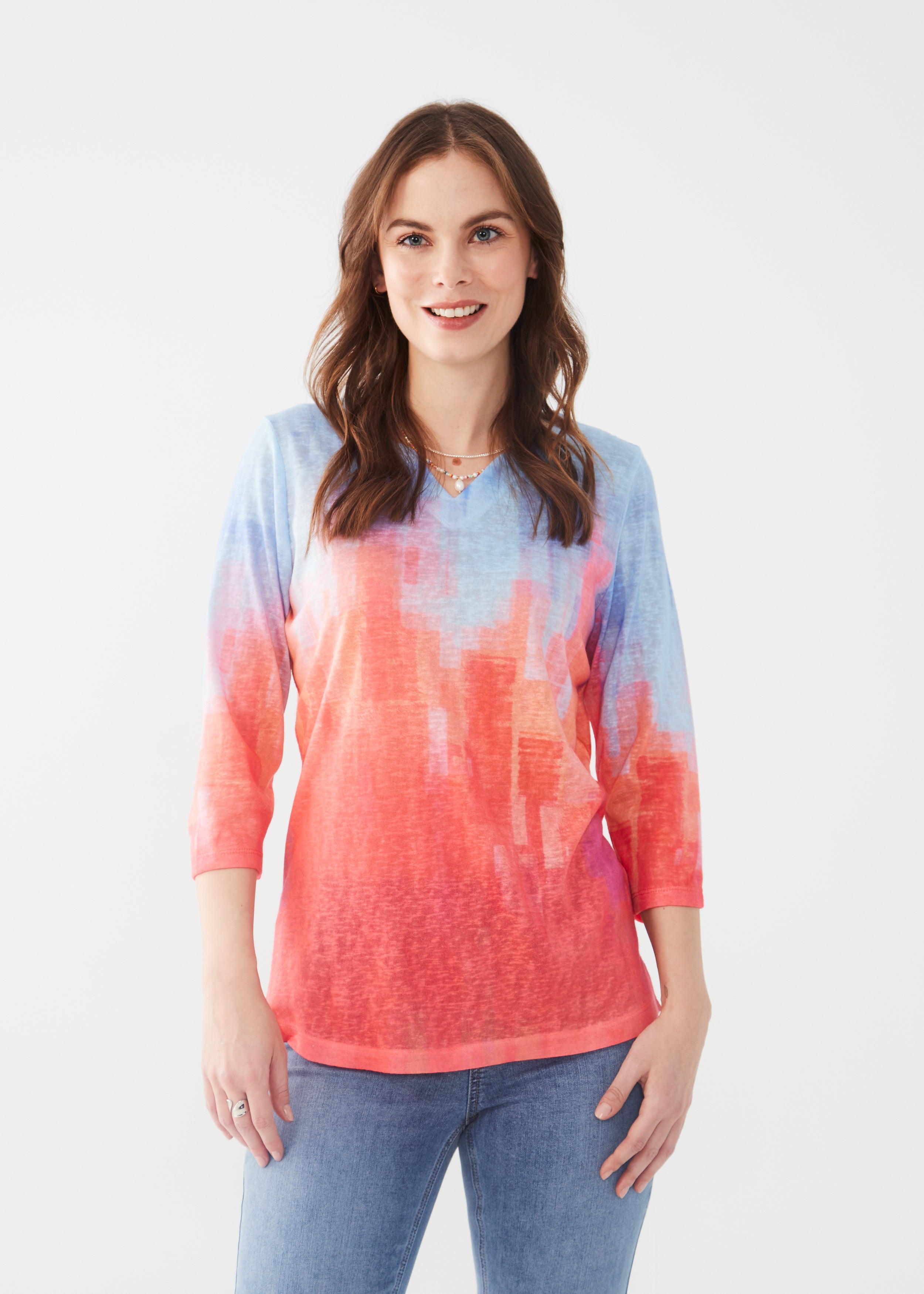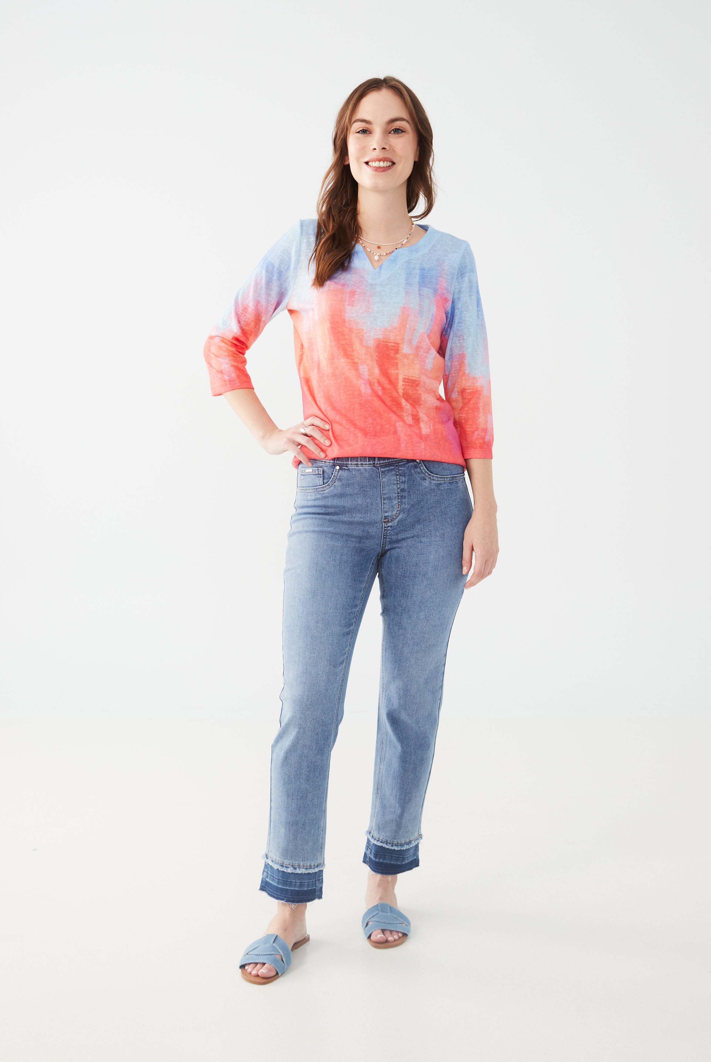 Haut en Jersey à Encolure Crantée et Manches 3/4