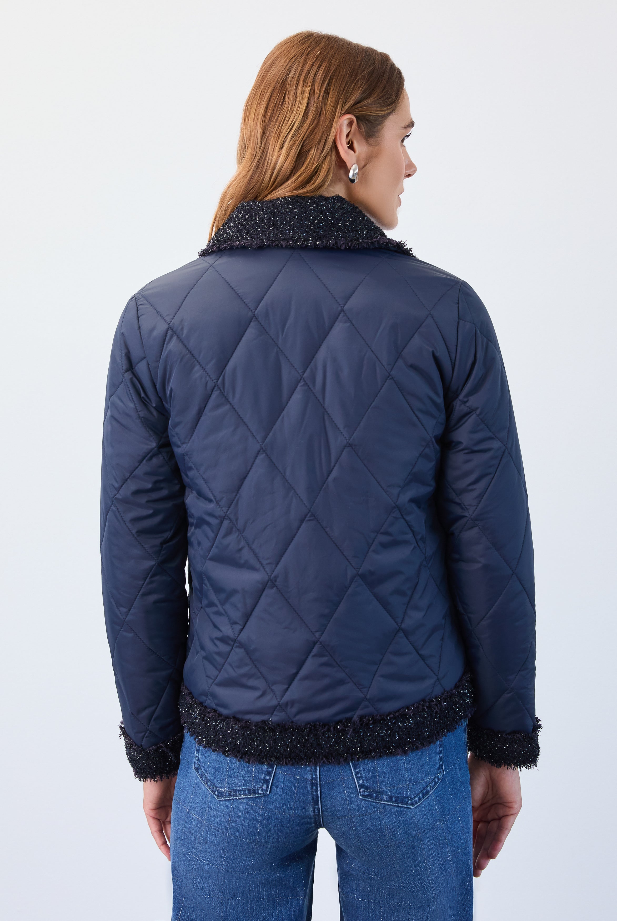 When the dress code calls for cozy, show up in soft luxe. This ivory bomber with plush faux fur trim and coordinating pants turns “white” into wow.