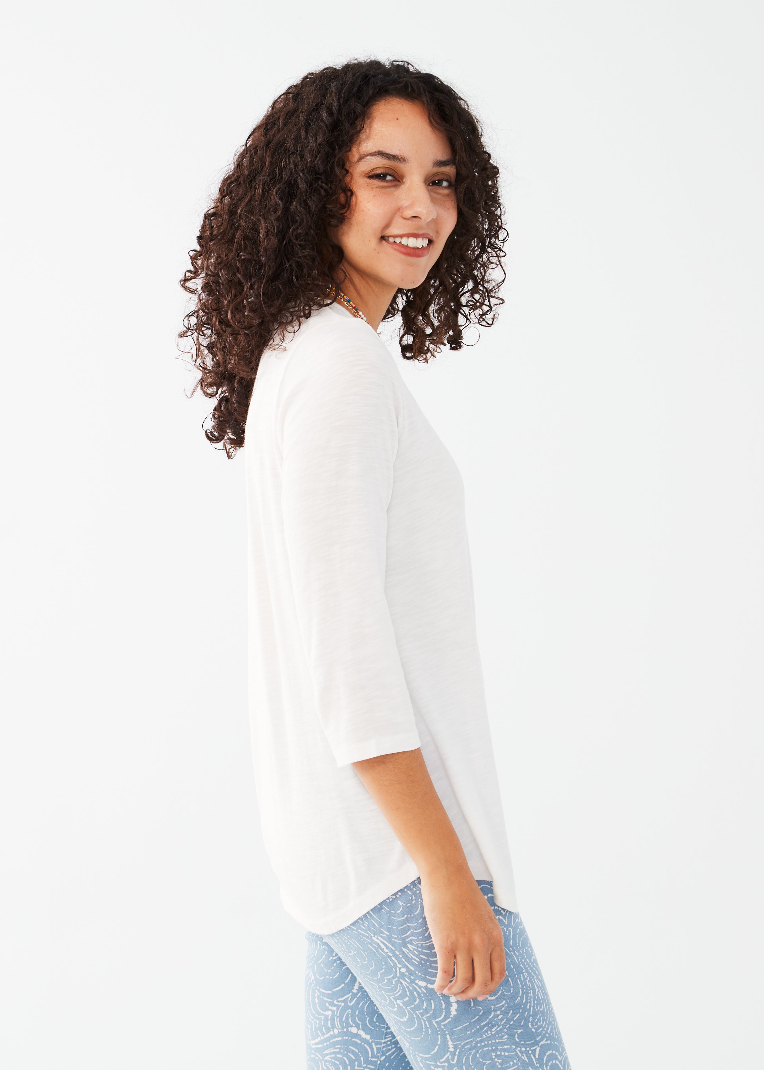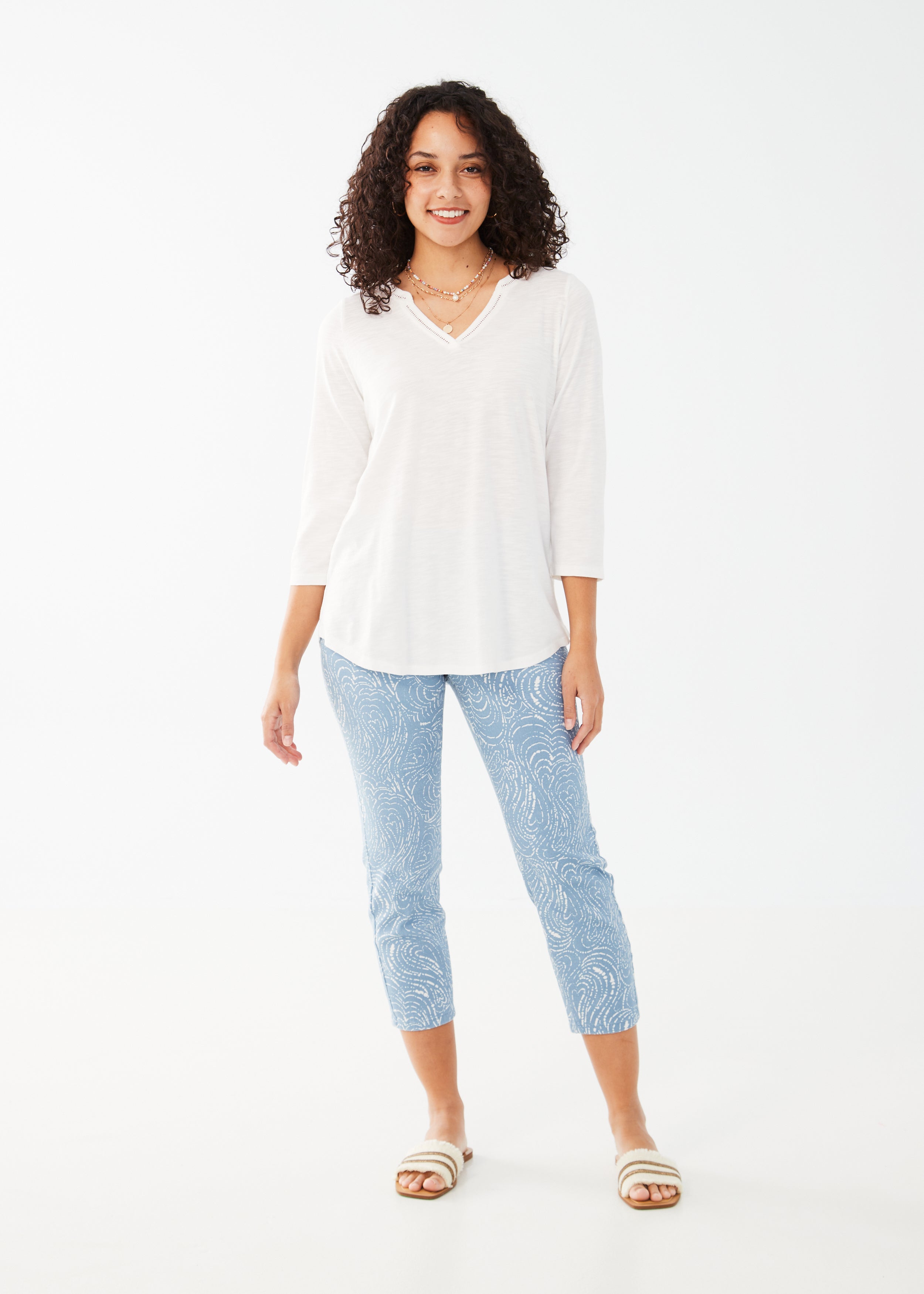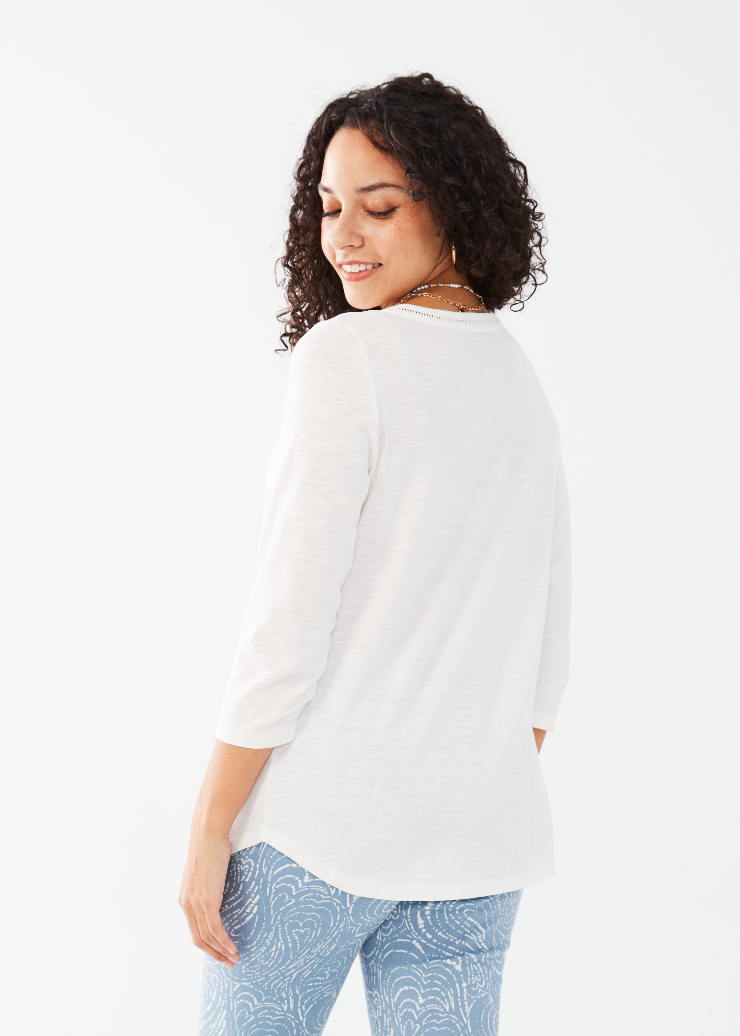 3/4 Sleeve Split Neck Top